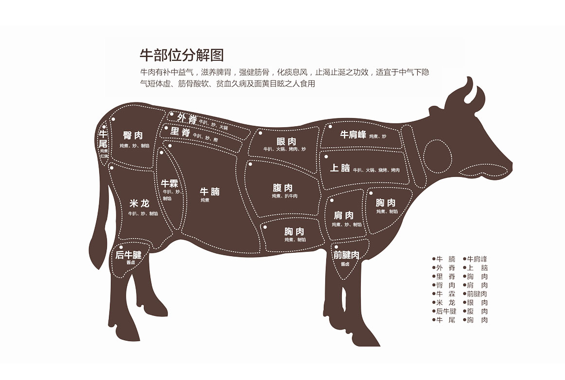 部位肉酮體占比7%,牛腹后部肉無骨自然可用部分,去淤血、軟骨、表面泡沫狀粘膜、多余脂肪及血管,口感鮮嫩,筋、油、肉層次豐富,口感多樣性,易烹煮。